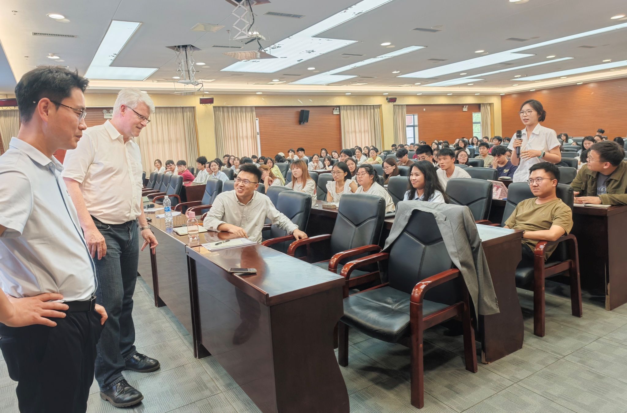 Terfort教授以细菌附着为例,生动讲解了表面结构在抗感染策略中的启发,并借助糖萼模型阐释其在细胞识别与通讯中的关键作用。同时,他介绍了可切换型SAMs在生物识别中的应用,展示了调控表面官能团以实现分子精准识别的研究进展,深化了师生对生物界面行为的理解。
