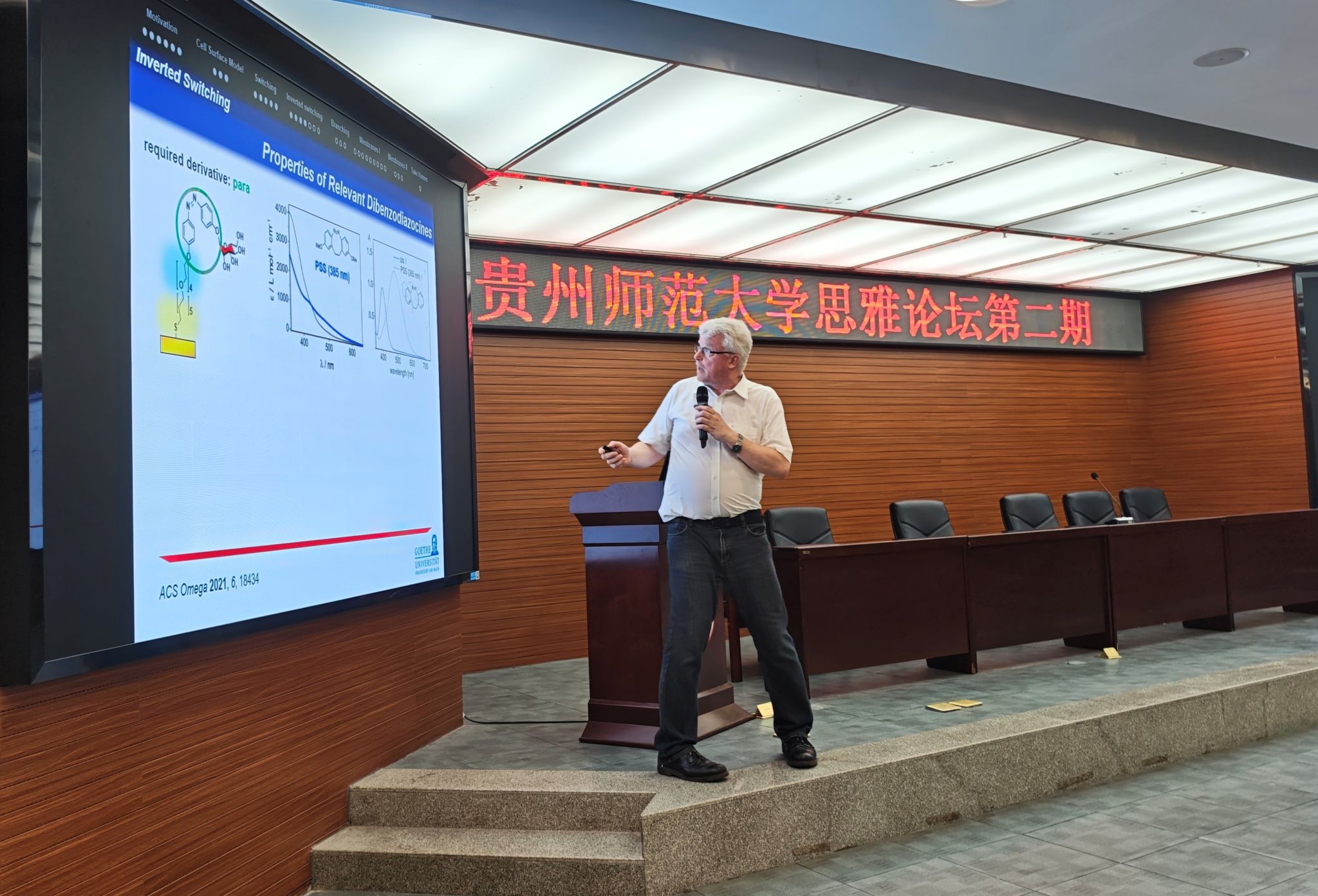 为营造科研创新氛围,拓宽师生视野,贵州师范大学于2025年6月23日举办“思雅讲坛”第二期,邀请德国法兰克福歌德大学化学系讲席教授Andreas Terfort来校作题为“Monolayer-based Materials to Study the Structure of Proteins and Their Interactions with Surfaces”的学术报告。讲座由化学与材料科学学院与科学技术处联合举办,学院副院长庄金亮教授主持会议,全校近300名师生参加讲座。