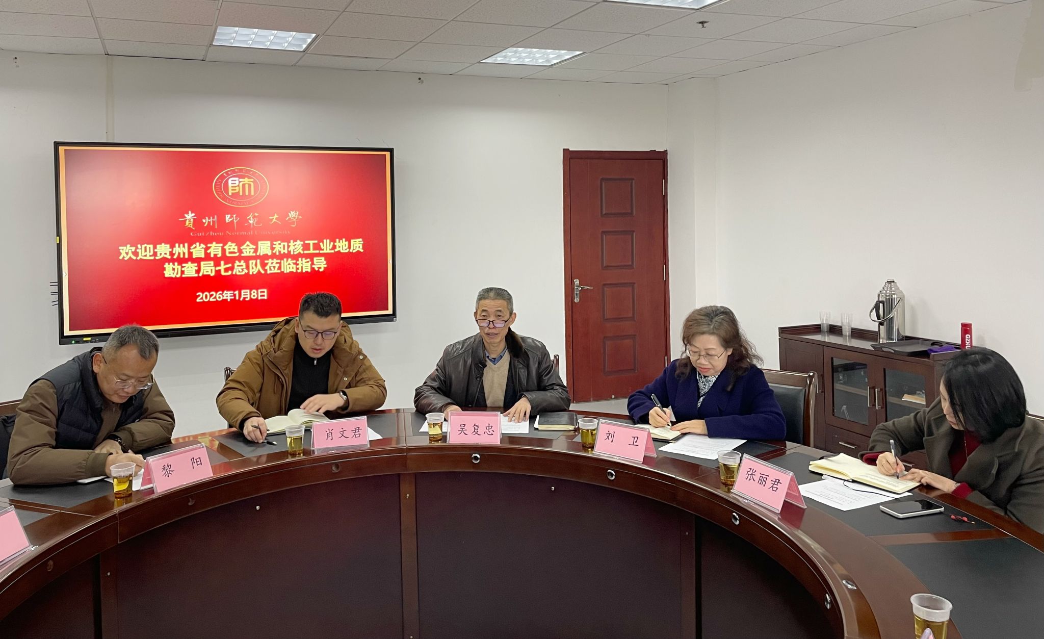 1月8日上午,贵州省有色金属和核工业地质勘查局七总队姚馨书记、尹努寻总工程师、王林经营负责人、田超主任、刘斌锋院长、刘勇副院长一行6人至我校开展交流座谈,副校长吴复忠出席并主持会议。