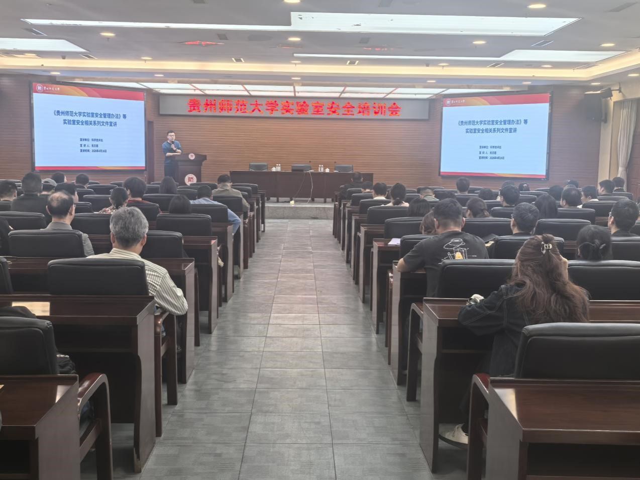 2026年4月16日下午,我校在东区学术会议中心二楼会议室召开全校实验室安全培训会。涉实验室二级单位主要负责人、分管实验室安全工作副职、实验室安全联络员、实验室责任人、实验员及实验教师参加会议。会议由科学技术处处长肖文君主持。
